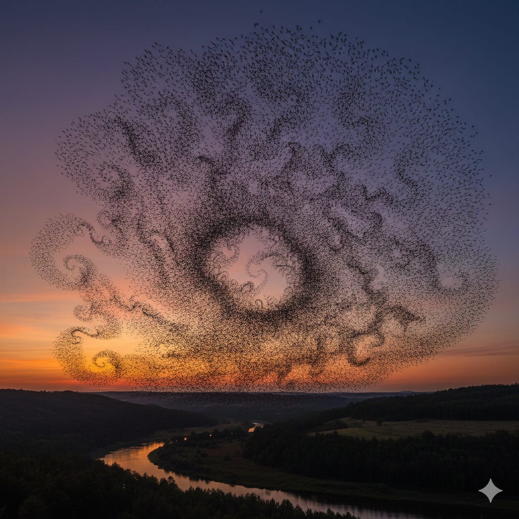 Also, note that the ‘emergence’ image almost looks like a murmuration of starlings generating a fractal pattern. Emergence within emergence?