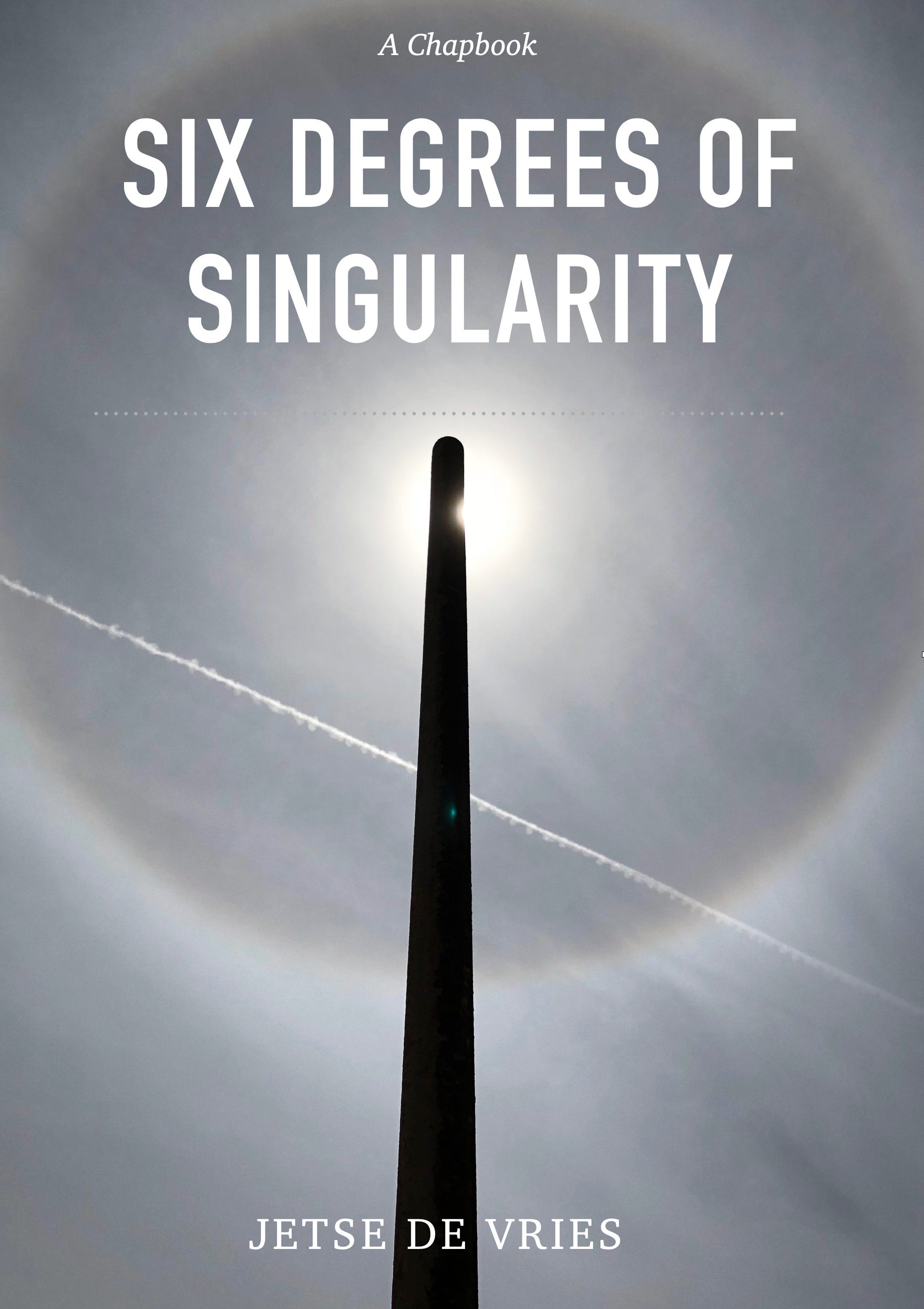 If you leave an honest comment—negative, positive, ‘meh’, whatever, as long as it’s your honest opinion—with your name, then you can contact me here in the Substack comment section or via my email jetse (at) home (dot) nl. Once I confirm that you’ve indeed posted a comment, then I will send you an electronic copy1 of my chapbook Six Degrees of Singularity.